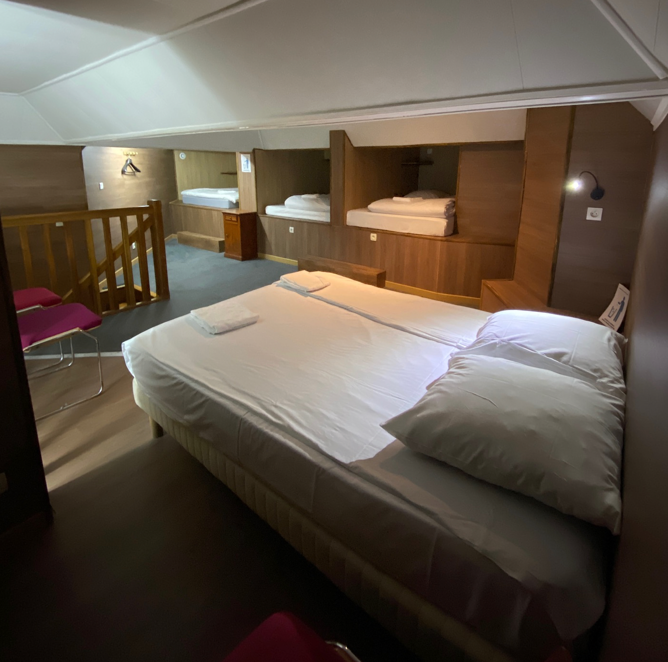 1 lit double, 2 lits simples cabine, 1 lit simple cabine